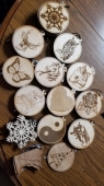 Ornaments Come as bare wood. You can paint or stain them if you wish.
